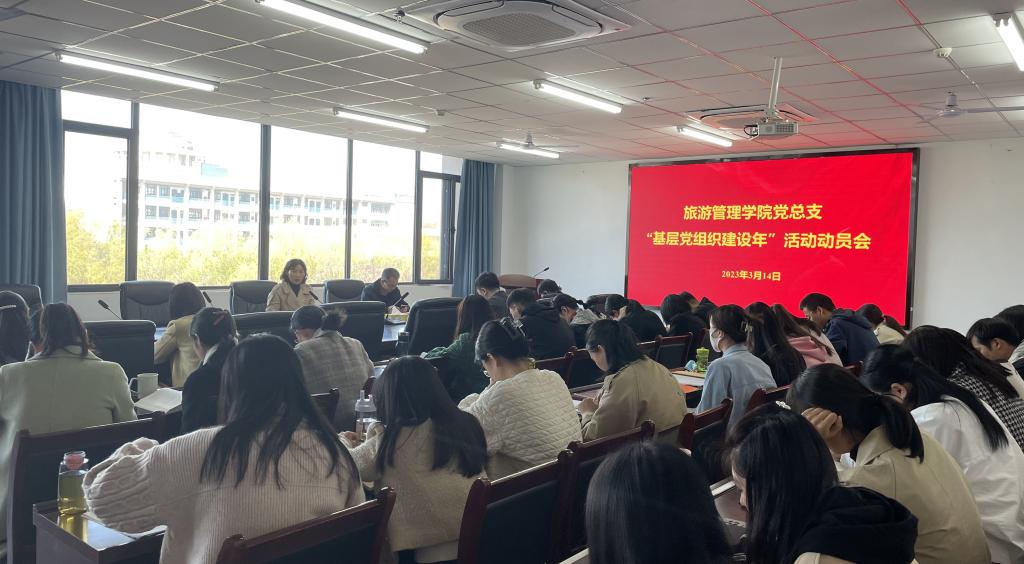 3月14日下午,旅游管理学院党总支在双创中心310会议室召开“基层党组织建设年”活动动员会。会议由党总支副书记杜丽主持,全体教职工参加。