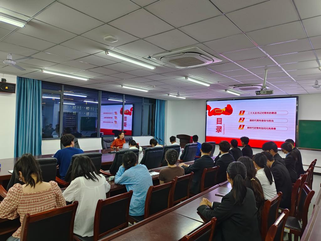 为扎实开展学习贯彻习近平新时代中国特色社会主义思想主题教育,深入学习贯彻习近平新时代中国特色社会主义思想和党的二十大精神,旅游管理学院于5月16日晚上在双创中心310会议室,开展学生党员“学习二十大青春亮风采”主题党课活动。本次党课由党总支副书记杜丽主讲,全体辅导员及学生党员参加会议。