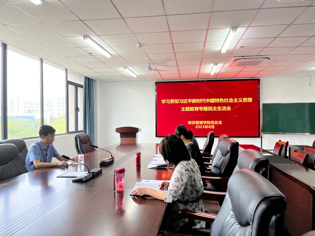 2023年8月31日下午,旅游管理学院党总支召开学习贯彻习近平新时代中国特色社会主义思想主题教育专题民主生活会,紧扣主题主线,聚焦“学思想、强党性、重实践、建新功”总要求,联系班子成员工作实际,严肃认真开展批评和自我批评。学院班子成员参加会议,副校长刘开华到会指导并讲话。