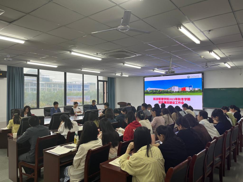 9月12日下午,旅游管理学院召开2023年秋冬学期党风廉政建设工作会暨警示教育会,副校长刘开华出席并指导。学院领导班子成员,全体教职工参加此次会议,会议由院党总支副书记杜丽主持。