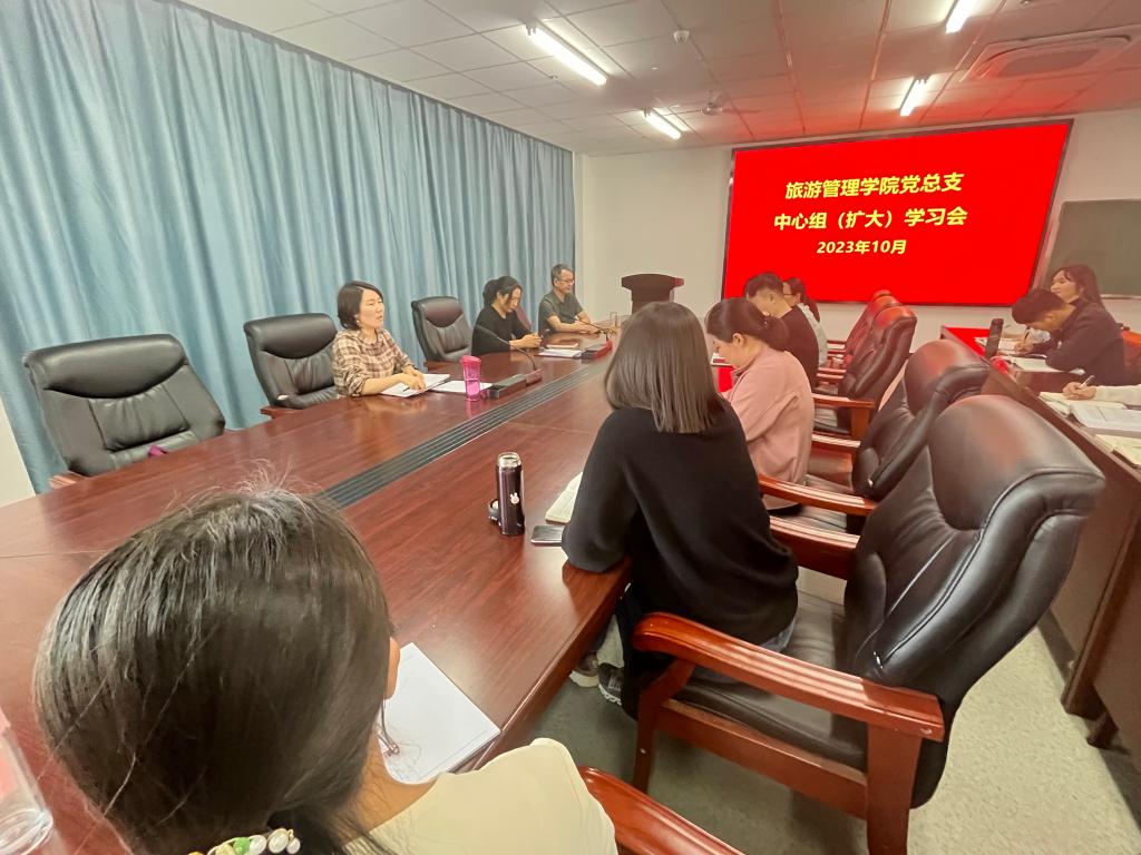 10月17日下午,旅游管理学院党总支在双创中心310会议室召开中心组(扩大)学习会。会议由党总支副书记杜丽主持,学院班子成员参加会议,院科级干部及各支部书记列席。