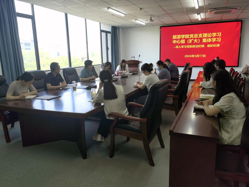 5月17日,旅游学院党总支在双创310会议室召开理论学习中心组(扩大)集体学习会,专题学习党的政治纪律、组织纪律。学院领导班子成员、科级干部、党支部书记参会,会议由党总支书记朱长明主持。