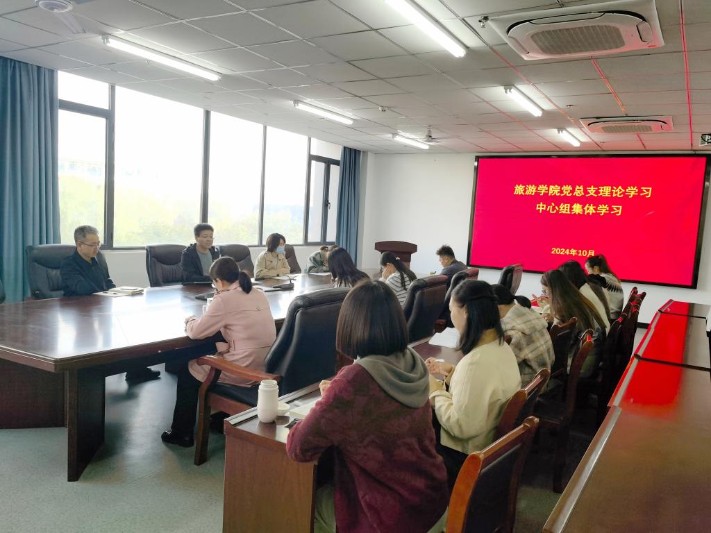 10月25日,旅游学院党总支在双创中心310会议室召开理论学习中心组集体学习会。会议由党总支书记朱长明主持,党总支委成员参会,相关科级干部列席会议。
