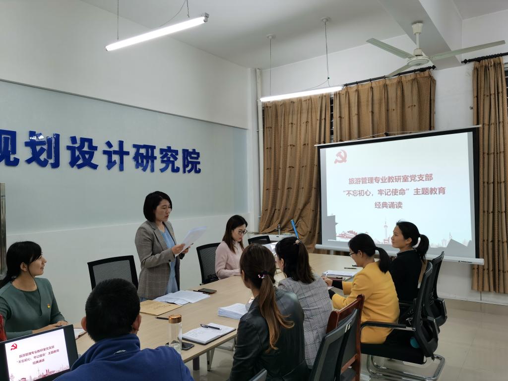 旅游管理专业教研室党支部深入贯彻落实“不忘初心、牢记使命”学习教育推进会精神,11月7日,旅游管理专业教研室党支部在2C506召开“不忘初心、牢记使命”主题教育学习会之主题党日活动。