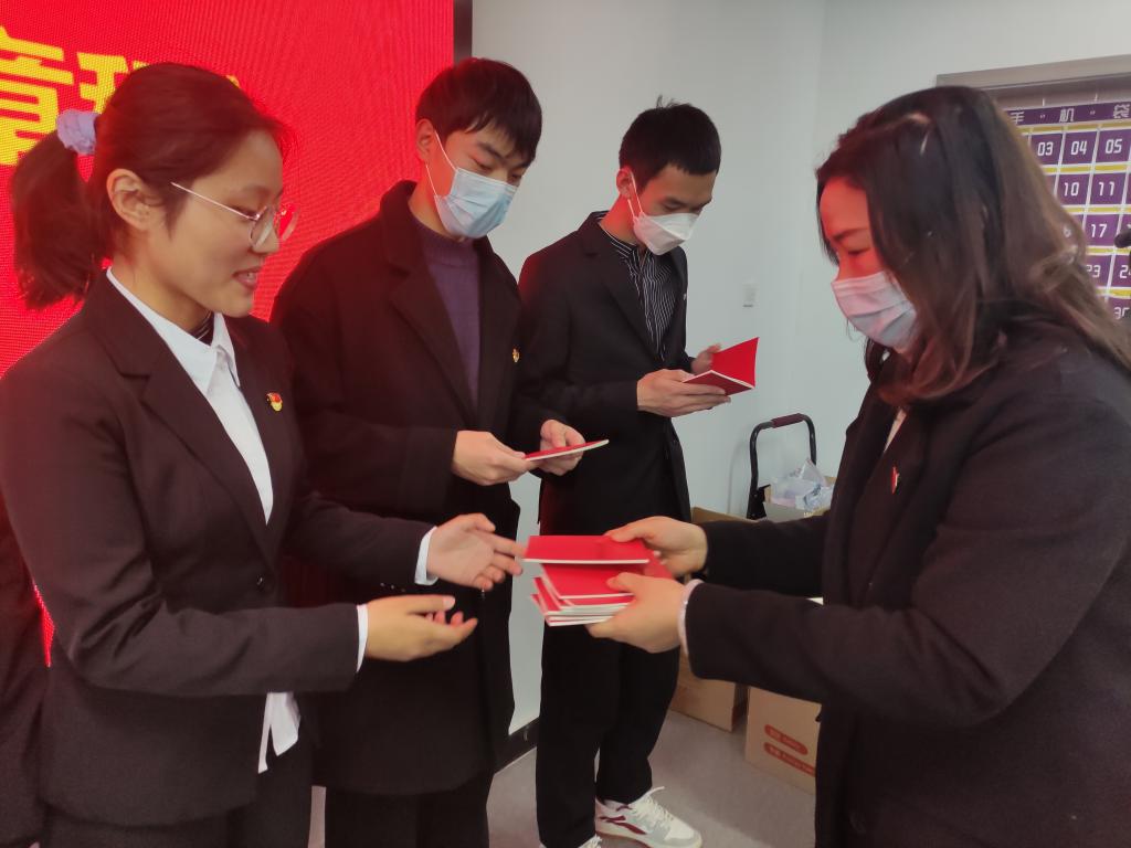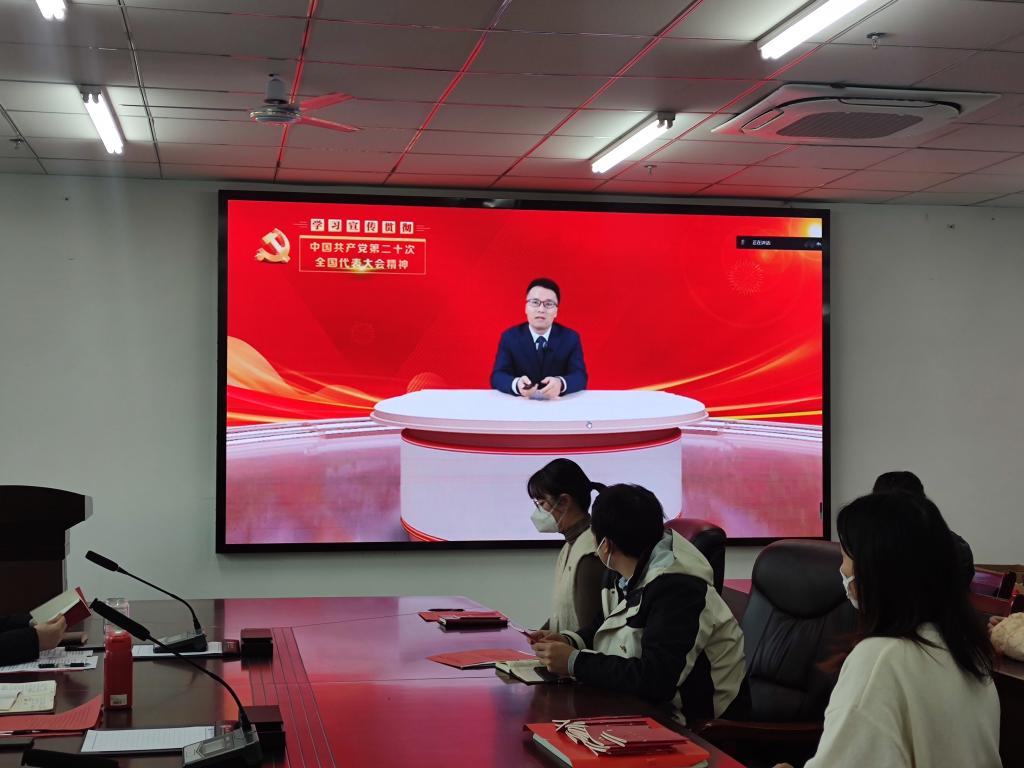 最后,杜丽、余兵代表党总支给全体党员赠送新修订的《中国共产党章程》并集体观看学习宣传贯彻党的二十大视频《中国共产党章程》。