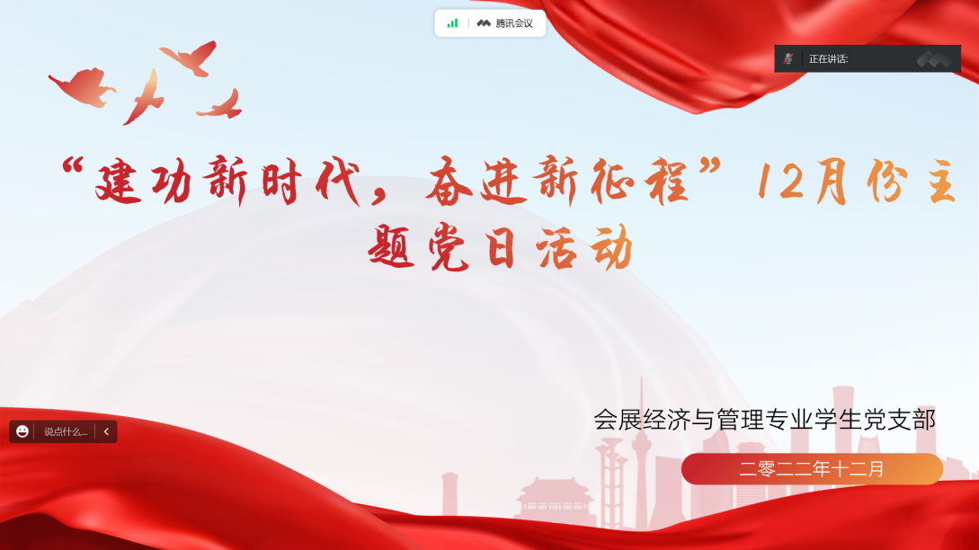 为持续学习党的二十大精神,12月20日,会展经济与管理专业学生党支部线上召开12月主题党日活动,深刻学习领会党的二十大报告中“实施科教兴国战略、强化现代化建设人才支撑”的重大战略部署,支部全体党员参会,会议由支部书记易冉主持。