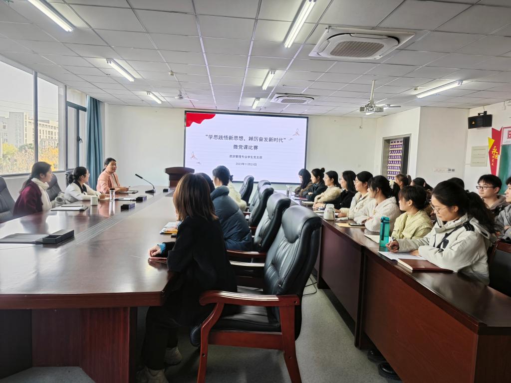 为巩固深化学习贯彻习近平新时代中国特色社会主义思想主题教育成果,扎实开展“基层党组织建设年”活动,进一步提升学生党员教育实效,教育引导学生党员学好新时代理论,讲好新时代故事,11月23日,旅游管理专业学生党支部在双创中心310会议室开展了“学思践悟新思想,踔厉奋发新时代”微党课大赛。支部在校师生党员参加了本次比赛。