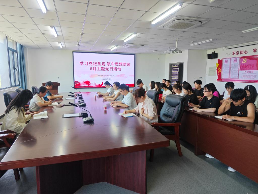 5月19日,旅游管理专业学生党支部在双创中心310会议室开展了“学习党纪条规,筑牢思想防线”5月主题党日活动。会议由支部书记秦双飞主持,支部全体党员参加了本次会议。