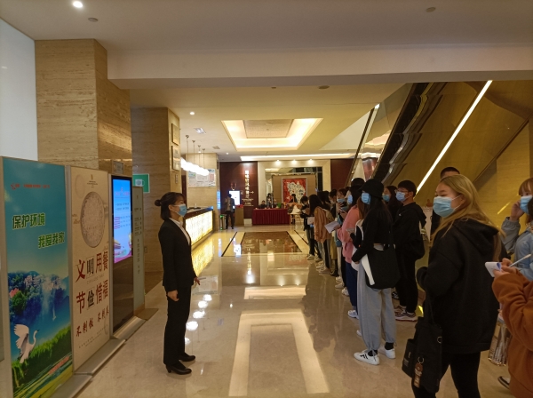 上午8:50学生到达锦江国际大酒店,酒店总经理助理宋新冉女士携主要部门负责人对同学们的到来表示热烈欢迎,并介绍了酒店概况、参观路线和认知实习的注意事项。随后,在酒店工作人员带领下,同学们分组参观了信阳锦江国际大酒店的前厅部、餐饮部、客房部、康乐部等主要部门,参观过程中,工作人员详细地向同学们介绍了各部门的工作职责、岗位职能等。参观后,酒店管理层安排各部门负责人与同学们展开了互动,同学们结合本次参观内容以及自身对酒店行业的思考,与各负责人进行了热烈的讨论。酒店职业人用自身的工作经历,并结合酒店实际经营案例,帮助同学们认知酒店行业的发展前景,体会锦江集团的企业文化,同学们表示受益匪浅。