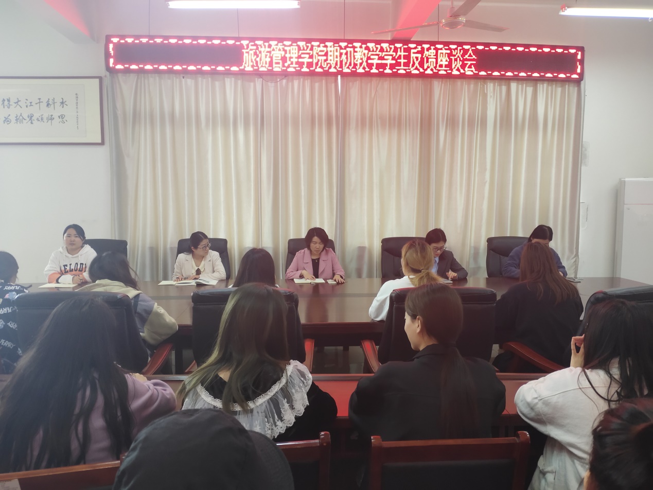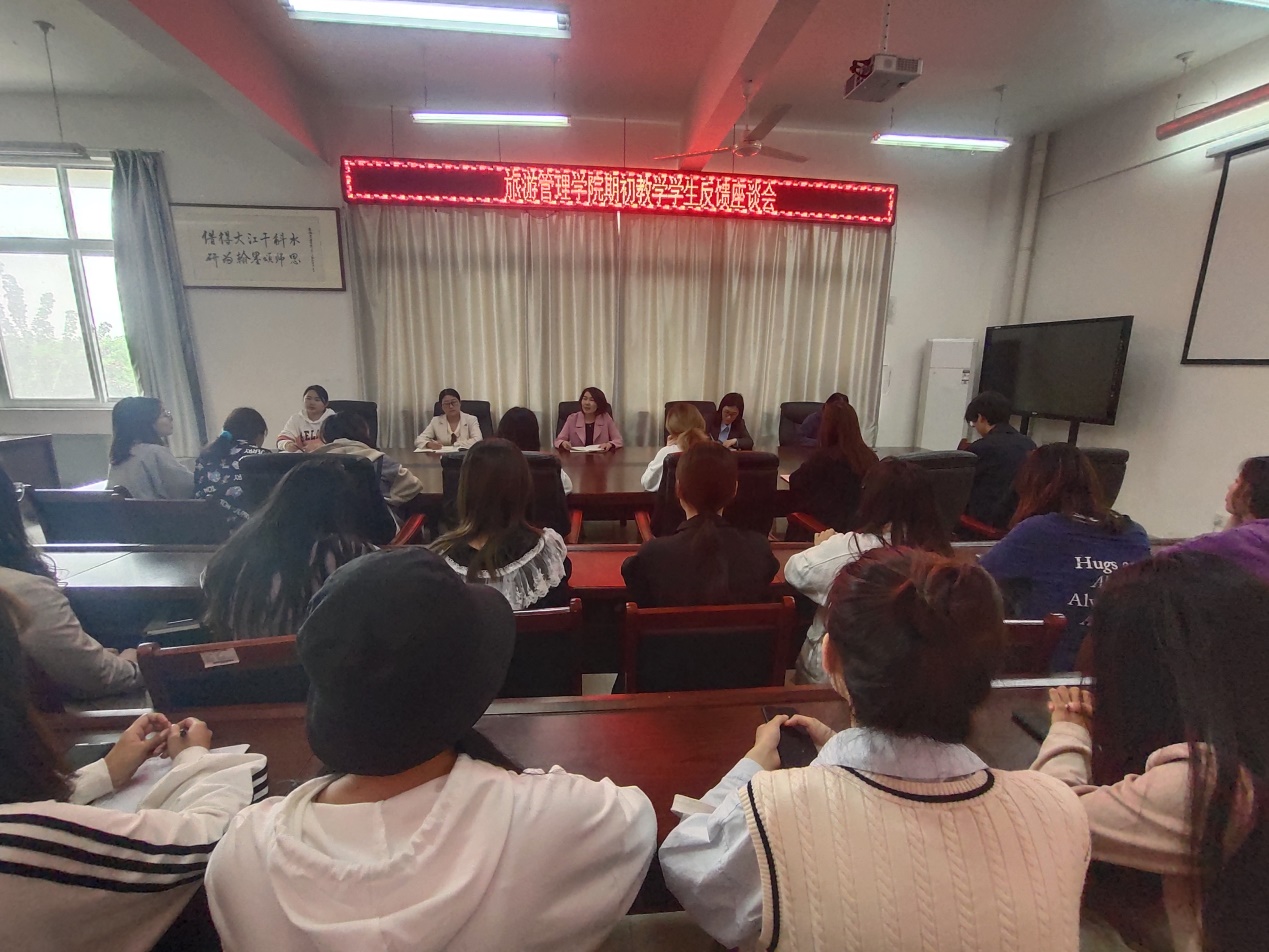 为全面了解2020-2021学年第二学期期初教学开展情况,提高教师教学能力,提升教学质量,旅游管理学院于2021年4月6日中午12:00在1c502召开期初教学学生反馈会。教学副院长陈婷、教学秘书张欢欢、旅游管理教研室主任王亮亮、酒店管理教研室主任郭文茹、会展经济与管理教研室主任周诗涛及各班学习委员、学生代表参加会议。
