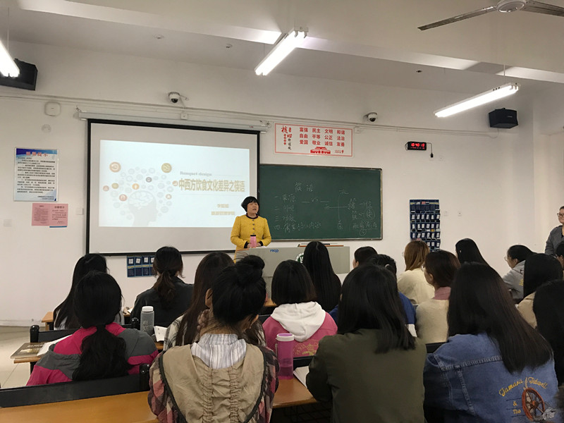 4月30日上午,由旅游管理学院李媛媛老师主讲的校优质示范观摩课第五十六讲《中西方饮食文化差异之筷语》在二教115顺利开展。