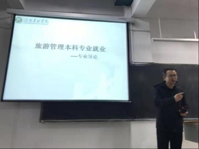 为了使旅游管理专业学生在学习的过程中,充分了解当今国内旅游市场的发展现状及就业前景,对未来的专业学习和就业有更清晰的认识,掌握专业知识,增强专业认同感。本学期自第六周至第十周,旅游管理学院副院长陈婷、余兵,旅游管理教研室主任王亮亮、专业教师张奇志陆续为专业学生开展了专业导论系列讲座。