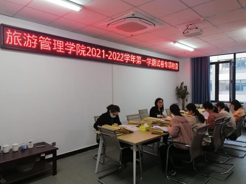 为进一步加强考试规范管理,促进考试质量提高,旅游管理学院开展2021-2022学年第一学期期末试卷专项检查工作。此次试卷专项检查分教研室自查和学院抽查两个阶段进行。
