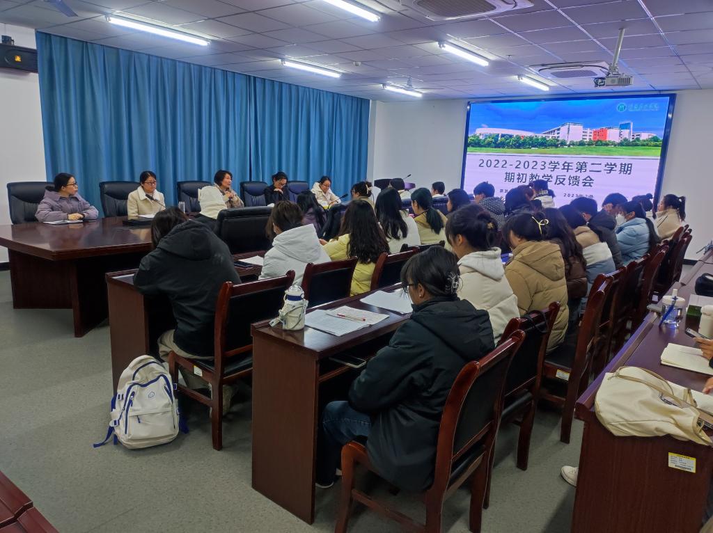 教学反馈会由副院长陈婷主持,各教研室主任及各班学习委员参加会议。会上,各班学习委员踊跃发言,积极反馈开学以来任课教师的上课情况及在学习生活中遇到的问题。总体来说,学生认为绝大多数任课老师教学效果良好,能够根据教学进度合理安排上课内容。同时,也有部分学生反馈了购买教材版本出现偏差的问题,并提出了希望多使用智慧教室上课的建议,参会的老师们认真听取学习委员反馈的意见并做了认真的记录,后续将做好调整工作。