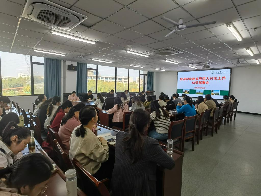 为积极贯彻落实学校教育思想大讨论工作部署,10月29日下午,旅游学院在双创中心310会议室召开教育思想大讨论工作安排部署会。学院领导班子成员、全体教职工参加会议,会议由党总支书记朱长明主持。