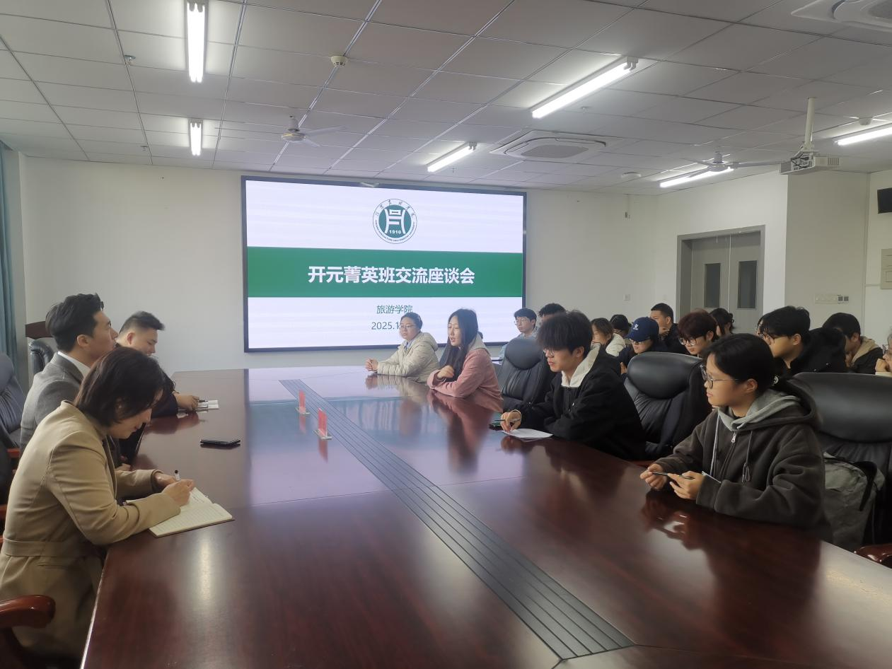 首先,陈婷回顾了三年来开元菁英班的人才培养情况,介绍了校企合作协同育人成果,对开元森泊度假乐园为我院学子提供的学习资源和实践平台表示感谢。座谈会上,2022级开元菁英班学员汇报了三年来的学习成长情况,并针对就业规划与张洋展开了讨论,张洋从行业人才培养与学生自身发展出发,为学生介绍开元森泊度假乐园的人才发展通道,以及学生应当如何结合自身情况明确职业选择与未来发展方向,对学生提出的问题进行了一一解答。会上还询问了2024级开元菁英班学员对课程教学的意见和建议。