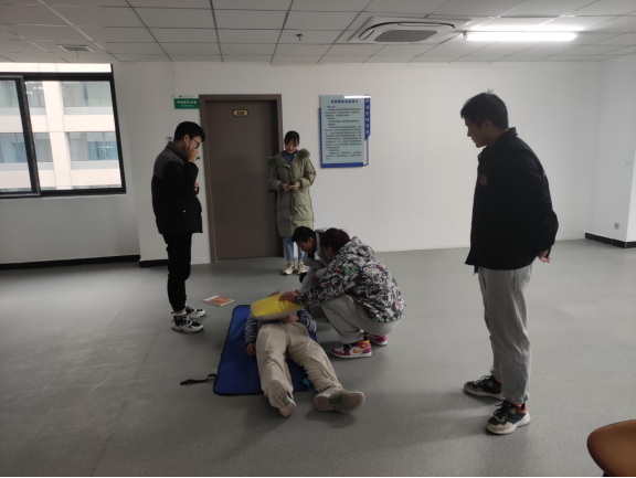 应急知识环节,针对孩子、孕妇、老人三类易出现突发状况的群体,分别演示了烫伤、流鼻血、磕伤、扭伤、扎钉、噎食、卡鱼刺、误食干燥剂、产妇羊水早破、休克、溺水等的正确处理方法。