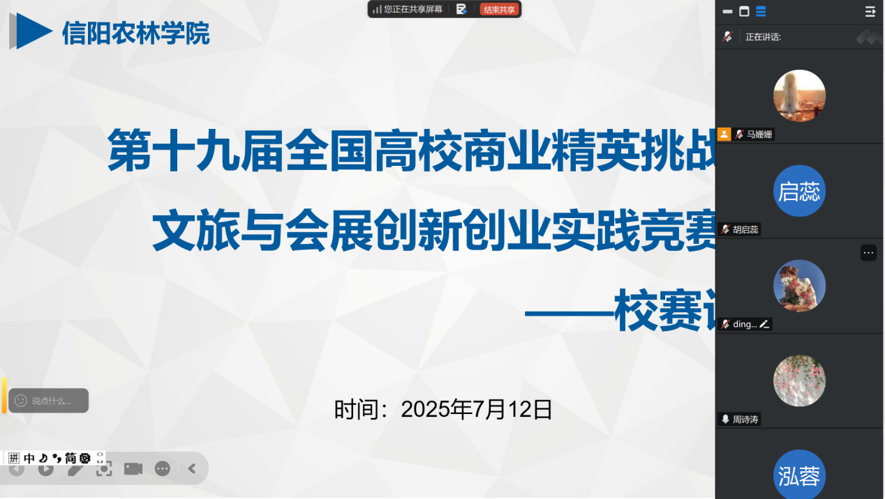 为培养新时期适应会展发展需要的应用型、创新性和复合型专业人才,我院于7月12日下午,通过腾讯会议召开第十九届全国高校商业精英挑战赛文旅与会展创新创业实践竞赛校赛。