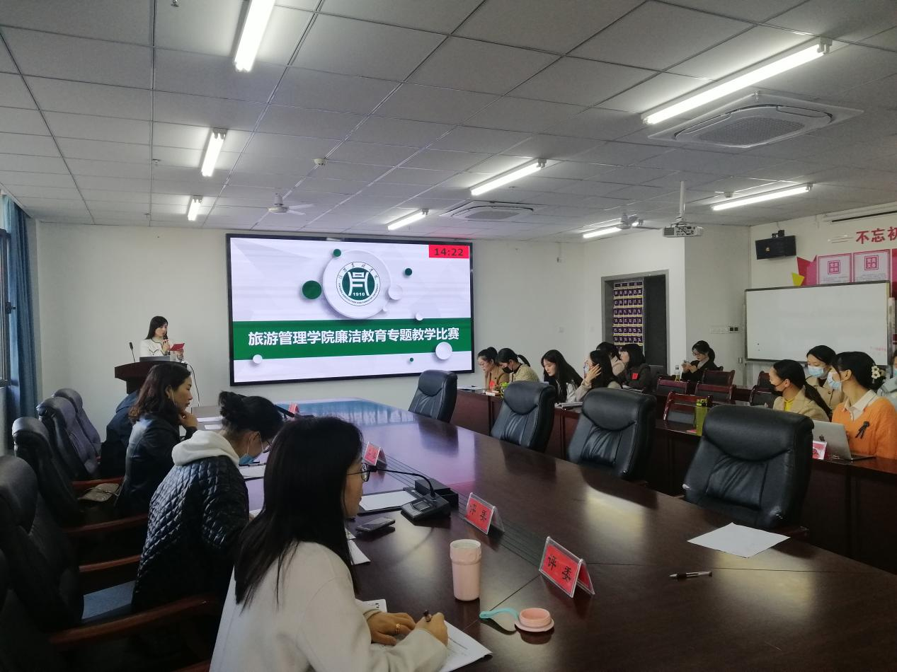 为加强反腐倡廉教育和廉洁文化建设,以赛促教,以赛促学,旅游管理学院积极响应学校号召,于11月25日下午三点在双创中心310会议室举办了第三届廉洁教育专题教学比赛初赛。此次比赛由党总支副书记杜丽、副院长余兵、教学秘书张欢欢、酒店管理教研室主任史亚奇、会展经济与管理教研室主任周诗涛担任评委。