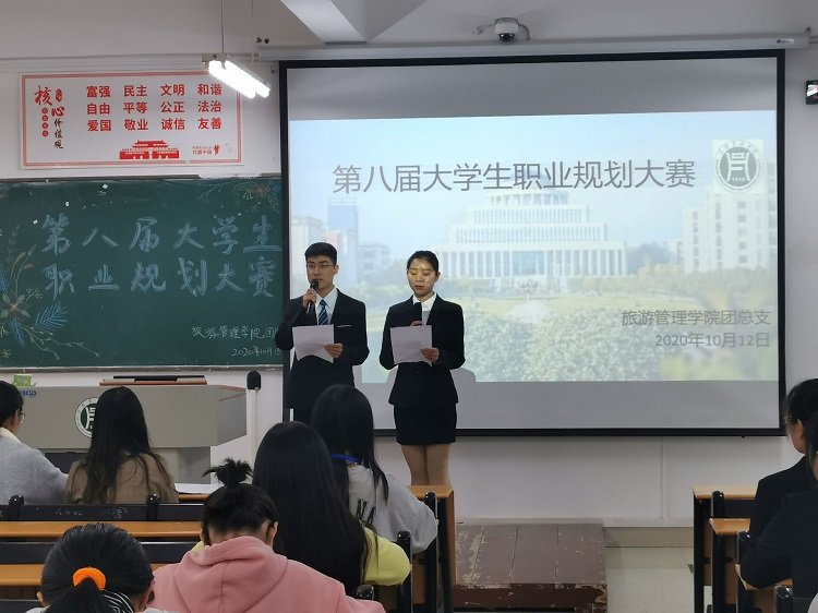 为帮助学生树立正确的世界观、人生观、价值观和奋斗目标,提高学生的择业、就业能力,10月13日下午,旅游管理学院在二教101举办了“第八届大学生职业生涯规划大赛”。