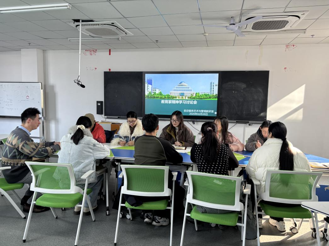 观看学习后,各教研室组织教师围绕“学习教育家精神,践行教育强国”主题开展学习讨论活动,引导广大教师以教育家为榜样,以实际行动积极投身教育强国、教育强省建设。教师们结合自身教学实践畅所欲言。大家一致认为,教育家精神为教师们教学树立了榜样,指明了方向。在日常教学中,要以教育家为榜样,秉持敬业爱生理念,创新教学方法,深度挖掘和巧妙融入思想政治教育元素,实现思政教育与专业知识教学的相融合并贯穿全过程,培养学生的家国情怀与专业素养。同时,要积极投身教学改革,探索适应行业发展的课程体系,为旅游行业培养高素质人才。