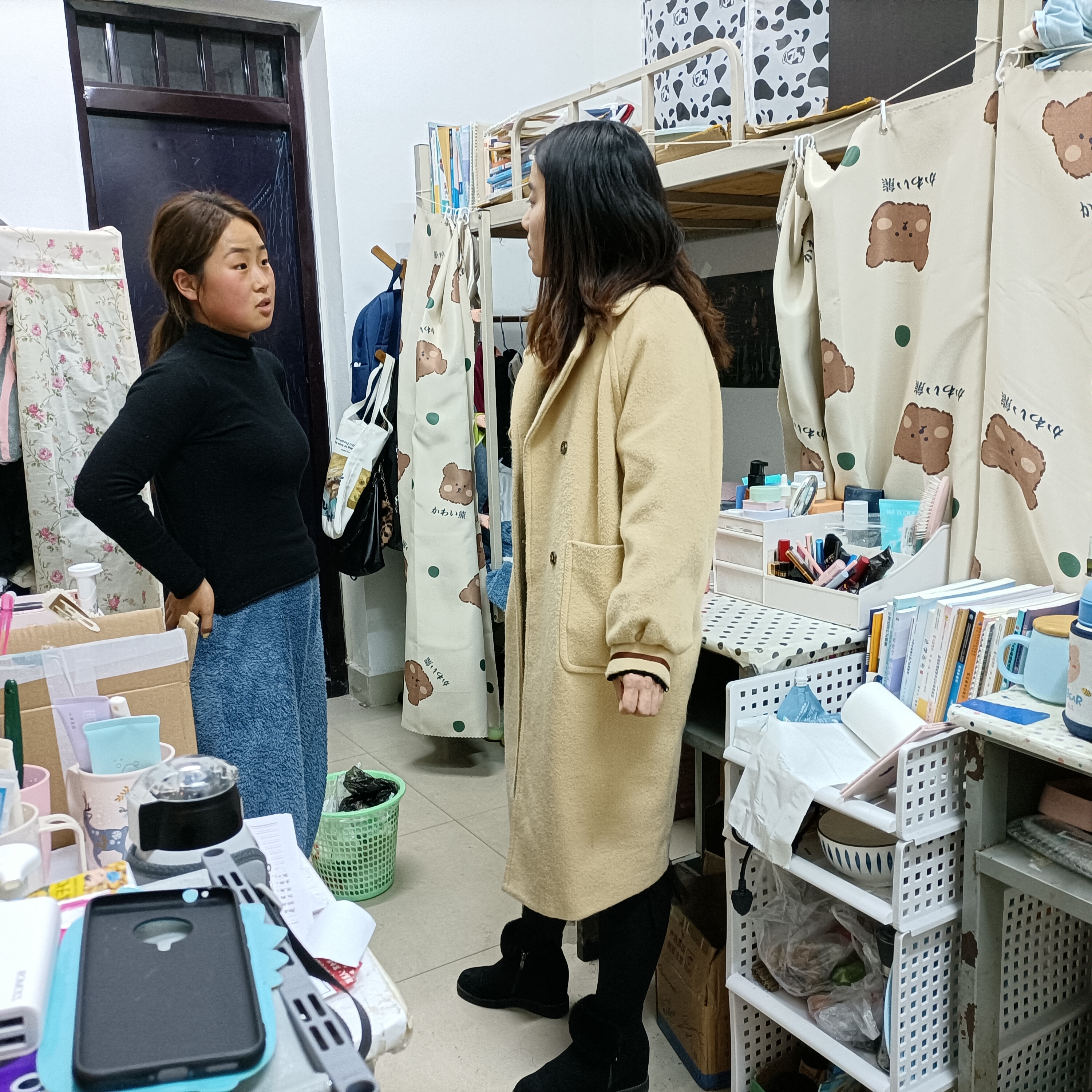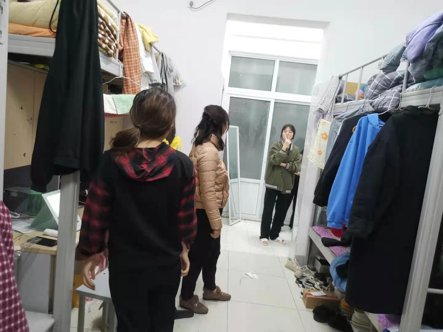 宿舍生活是校园生活的核心,是大学生活的重要组成部分。宿舍安全问题对同学们尤为重要,开始检查前,杜丽要求各辅导员一要对学生按时返回宿舍就寝情况进行检查,对自己所带学生请假人数、晚上返回宿舍就寝人数要严格检查,不能落下一个人,不能出现“糊涂账”。发现晚归或夜不归宿情况者第一时间联系,加强批评教育,及时上报学院并如实记录;二要认真排查各宿舍有无私拉乱接电线及违规使用电器;三要督促学生养成良好的卫生习惯,营造干净、温馨的生活环境,了解学生在学习和生活中有无困难,做到心中有数。