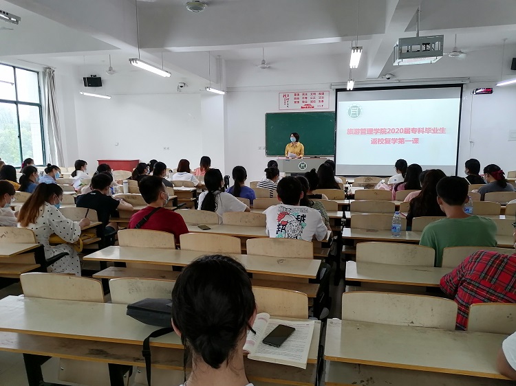 为切实做好专科毕业生返校后的疫情防控、安全教育、心理疏导、就业指导等工作,7月2日上午,旅游管理学院于二教201开展了2020届专科毕业生返校复学第一课活动。学院党总支副书记杜丽、副院长陈婷、毕业生辅导员罗志涛、张洋及返校学生参加了活动。活动由杜丽主持。