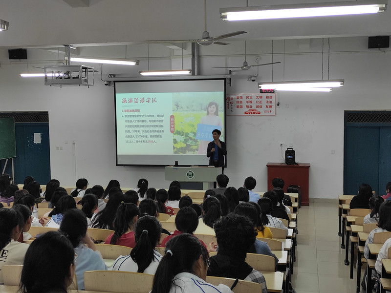 为增强旅游管理学院2020级新生对beat365在线平台官网及我院办学理念、办学特色、办学优势的认识,明确专业学习目标及发展前景,10月22日晚7点,我院在2教306开展了题为“校情院情介绍”的新生入学教育讲座。本次讲座由旅游管理学院副院长陈婷主持,院长刘开华主讲,学院部分教师和全体新生参加了本次讲座。