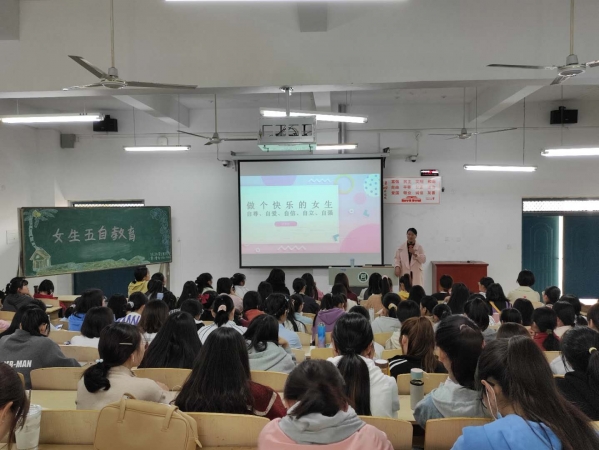 张春焕老师结合案例及自身经验从五个方面依次与在场的20级女生进行交流。自尊:即自我肯定——自我感觉良好,并认可自我。自尊是做人的灵魂,是自信、自强的支撑点。只有尊重别人,自尊的砝码才能加重。所以首先要有自尊,要肯定自己,这样别人才会更尊敬你。自强:是努力向上,是奋发进取,是对美好未来的无限憧憬和不懈追求。自强者的精神之所以可贵,在其依靠的是自己的拼搏奋斗,而非父辈他人的荫庇提携。自立:是不依赖别人,靠自己的劳动而生活。自信:是对自己的肯定,要相信自己。正确的自信心能使人意志坚定,不怕困难;自信是一份永远不为外人夺取、永远属于她自己的财富,罩在女性身上,成为她最美丽的魅力。最后是自爱,自爱的基础是自信,女生要自爱,要爱惜自己的生命,爱惜自己的身体,爱惜自己的人格,爱惜自己的名誉。