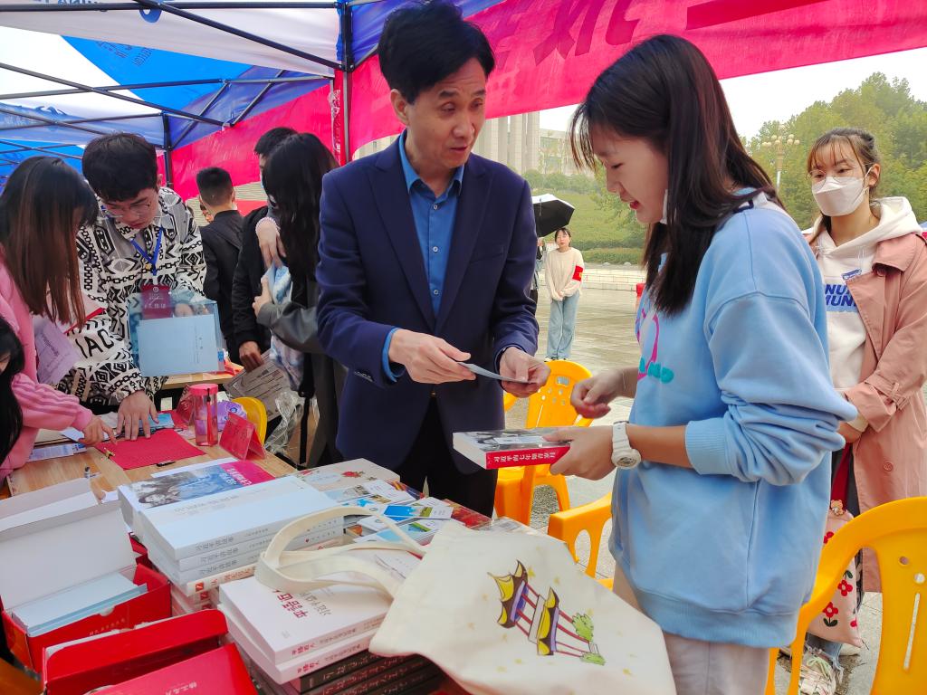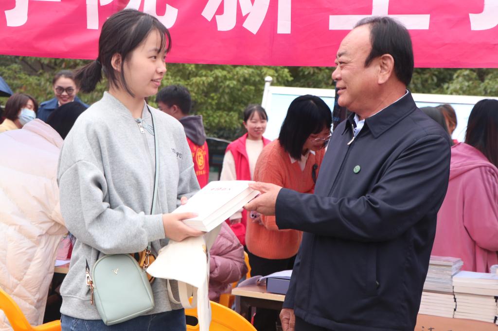 活动得到了校院领导的高度重视和大力支持,他们分别向新生赠送了《中国共产党简史》《习近平的七年知青岁月》《理想照耀中国》《百年党史关键词》《论中国共产党历史》等党史书籍,为同学们送去了认识党、了解党、热爱党的“精神食粮”,并勉励同学们,要积极主动地学习四史,积极从党的发展历史中体会今天中国取得的成就来之不易,今天的幸福生活、学习环境来之不易。在大学,不光要认真学习专业知识,不断提升专业素养,提高专业技能,更要认真学好党史这门“必修课”,从党的历史中汲取营养,用党的奋斗历程和伟大成就坚定信念、鼓舞斗志;要学思践悟,将所思所想联系于学习生活,发扬党的优良传统,努力提高自己的思想政治素质,厚植爱党、爱国情怀;要始终保持昂扬的精神状态,勇担时代重任,用积极向上的顽强拼搏精神,接过历史的交接棒,投入到新的学习和工作中去,为书写新时代的历史篇章贡献青春力量。