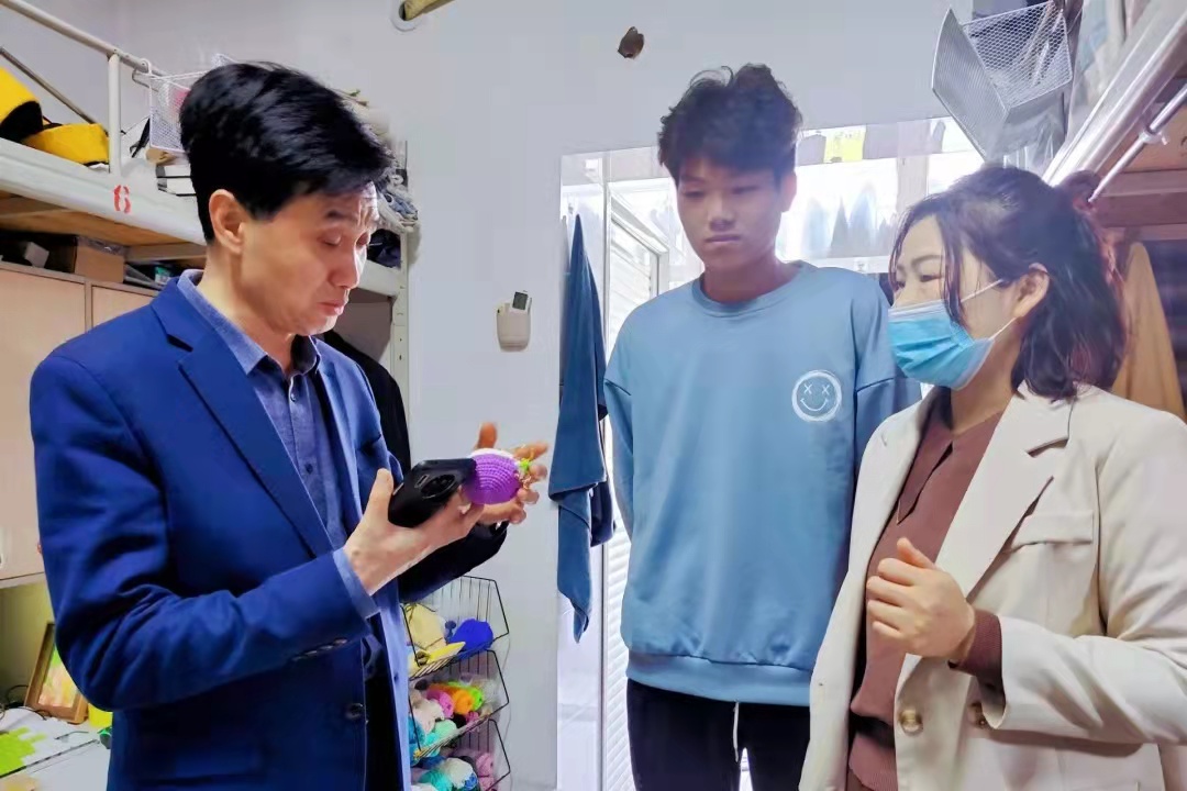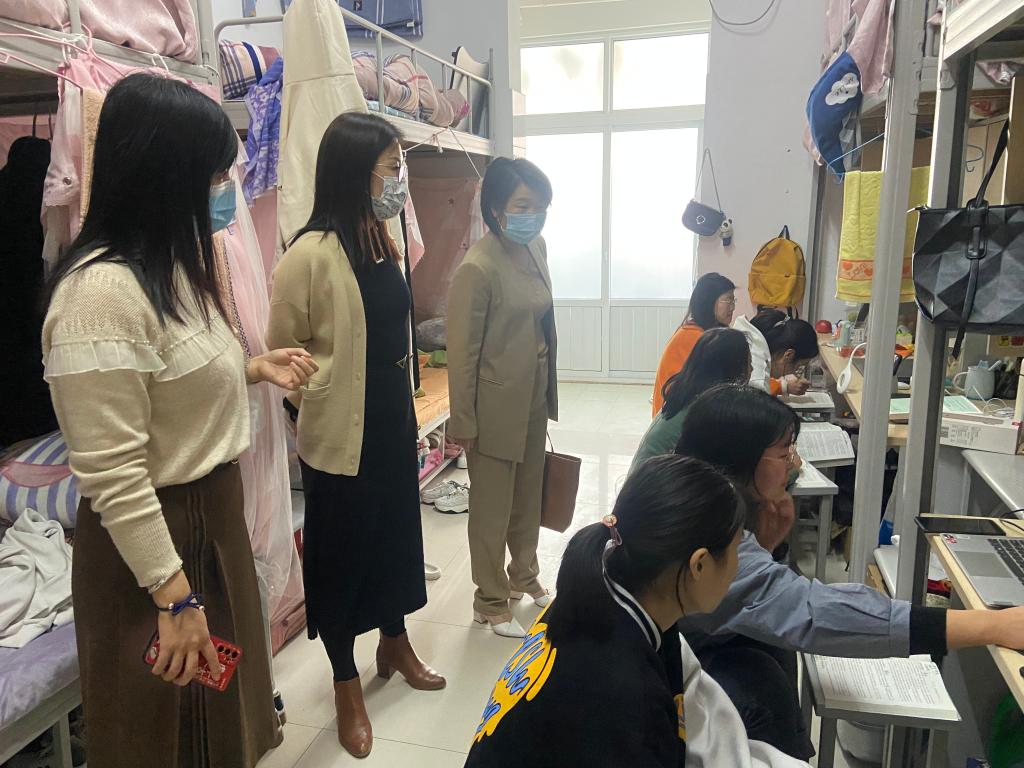 走访过程中老师们逐一查看了同学们在宿舍上网课的有关情况,详细咨询并了解了同学们在校园封控期间的思想和心理状况,询问同学们的生活学习诉求,倾听大家的心声,同时也向同学们强调了寝室卫生及用水用电安全。交谈中,院领导老师还用心地指导同学们特殊时期该如何养成自律的良好习惯,号召同学们在保质保量完成自己每天学业的同时,多走出寝室欣赏美丽的校园春景,舒缓压力,保持身心健康,同时要加强体育锻炼,培养兴趣爱好,将疫情期转化为“内功”修炼的良机,不负自我,不负青春。