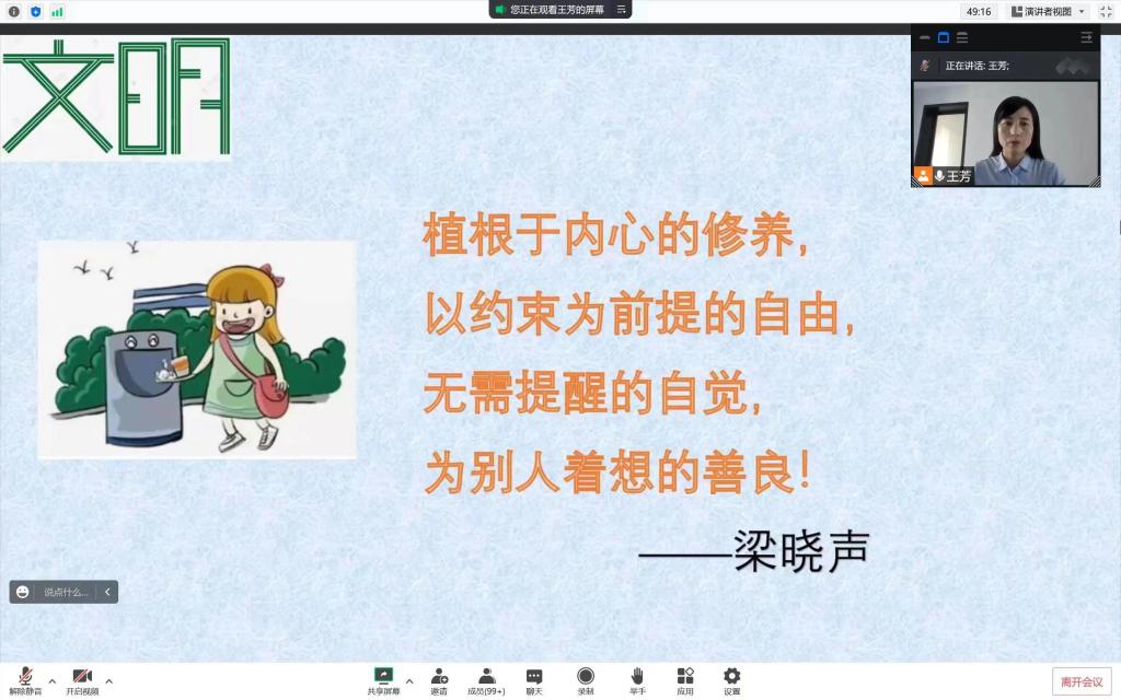此次培训通过腾讯会议APP分三个部分进行,由学院团总支书记王芳主持。首先,王芳老师围绕寝室安全、网络安全、“防诈骗”等向大家进行安全教育,不仅向同学们强调了寝室安全的重要性及学校关于禁止在寝室使用大功率电器、杜绝寝室危险品及禁止违规操作水电线路等有关问题的相关规定,要求大家无条件严格遵守,同时帮助同学们正确辨别发生在身边的网络安全陷阱、电话及其他形式的诈骗活动,提高大家的防骗本领。接着,会议进入第二部分大学生的文明素养提升,王芳老师给同学们解读了文明素养提升对大学生人格培养的重要性,并以生动的案例教育和引导同学们新学期如何做一名富有涵养,讲文明,有礼貌的好学生。最后,王芳老师带领全体新生共同学习了《beat365在线平台官网学生手册》,并重点讲解了有关违规违纪处理、请销假管理制度、综合测评管理办法、评优评先有关程序、规定等内容。