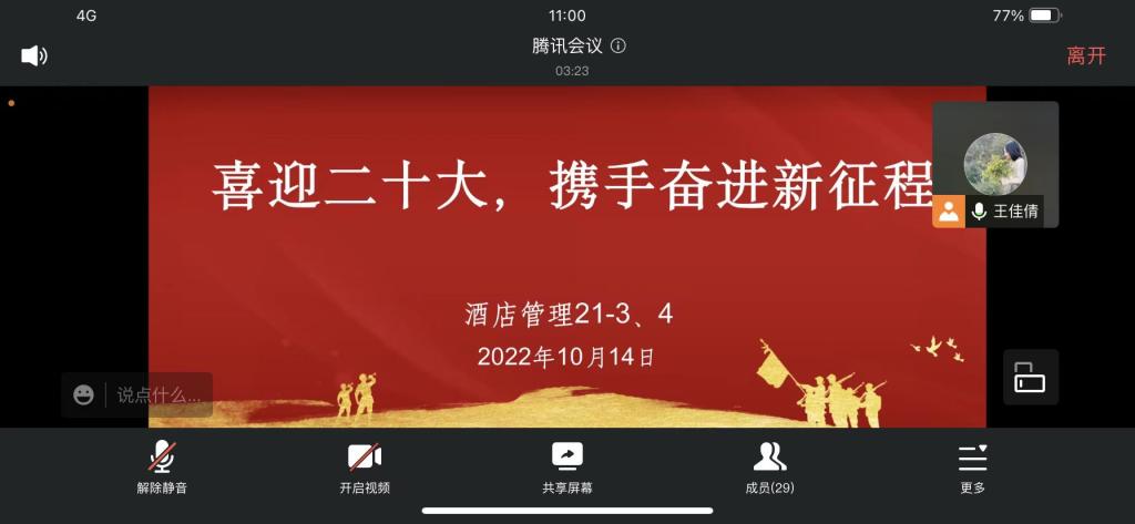 为迎接党的二十大胜利召开,进一步坚定理想信念,积极传承和践行红色精神,2022年10月13日至14日,旅游管理学院组织各班辅导员主持召开了“青春心向党 喜迎二十大”主题班会。
