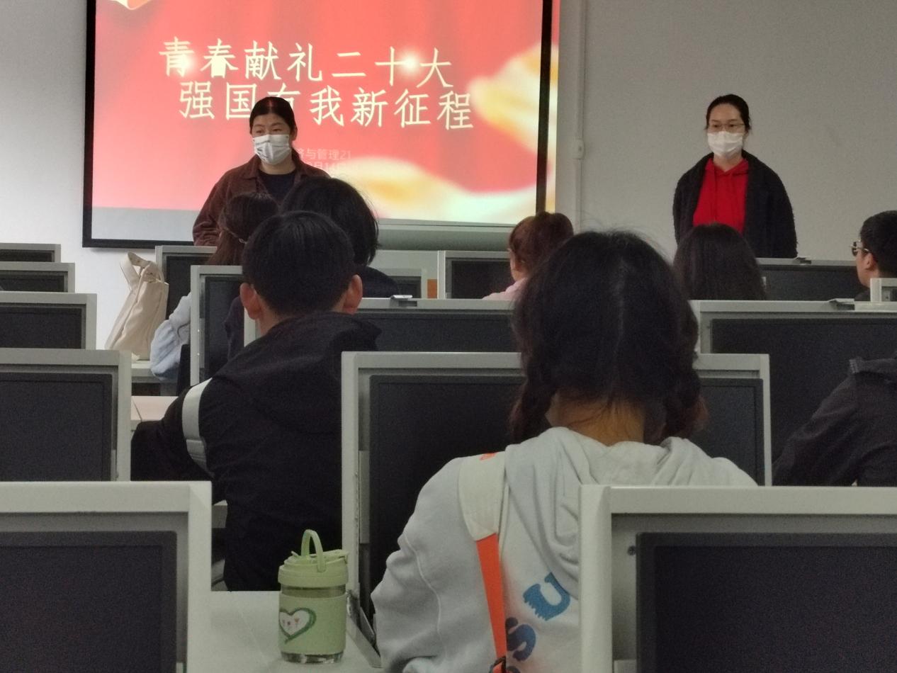 班会期间,辅导员带领同学们一起回顾党的百年历史,从红船一会到即将召开的二十大,从同学们儿时记忆到现在的繁荣盛世,以此引导同学们共同肩负新使命、新担当,争做时代新人,迎接党的二十大到来。接着,辅导员再次从疫情防控及人身财产安全对学生进行安全教育。