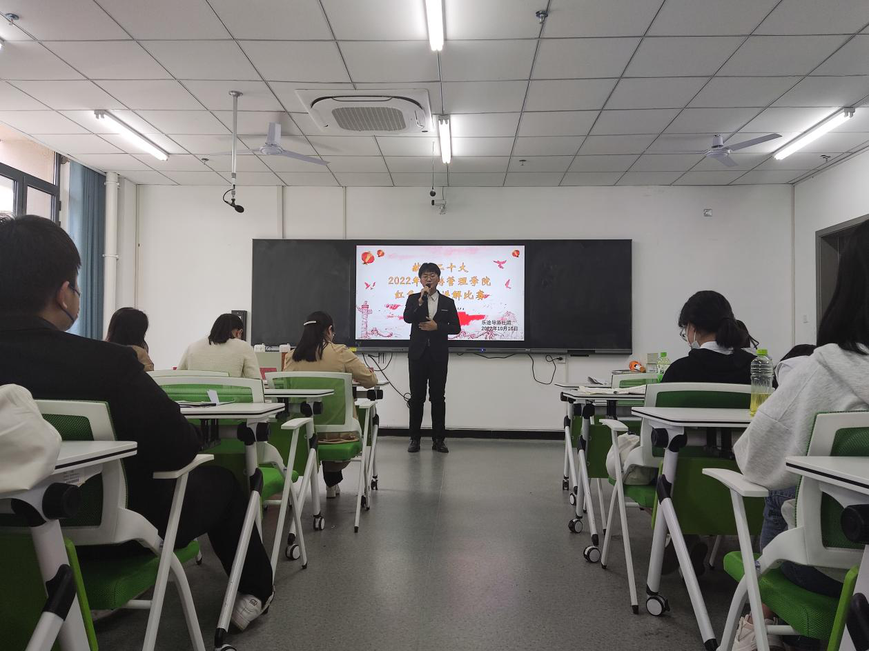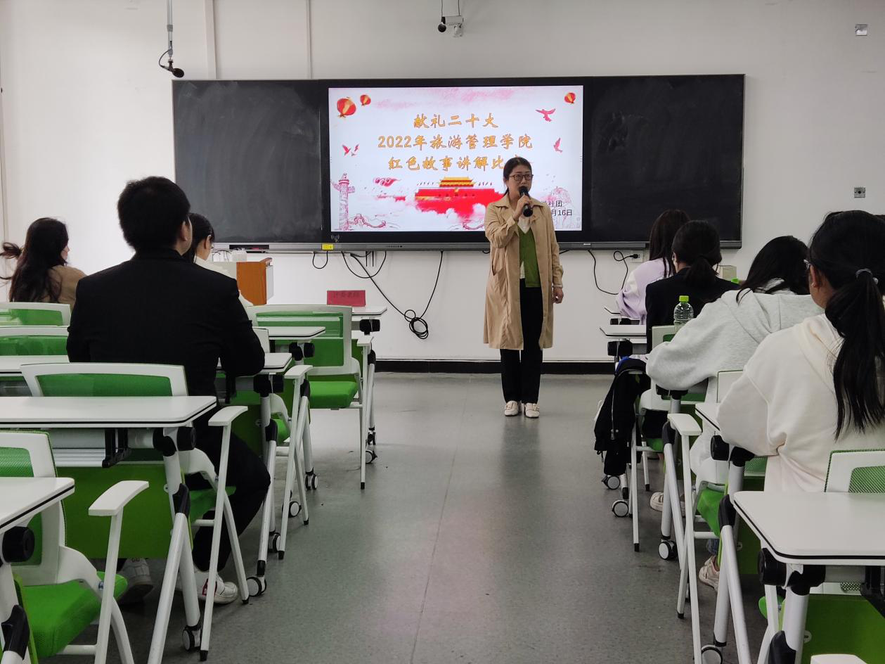 为庆祝中国共产党第二十次全国代表大会顺利召开,弘扬革命先烈的丰功伟绩,增强广大学生爱国主义情感、时代使命感和责任感,旅游管理学院于2022年10月16日在双创中心智慧教室307组织开展了“献礼二十大”红色故事讲解比赛。