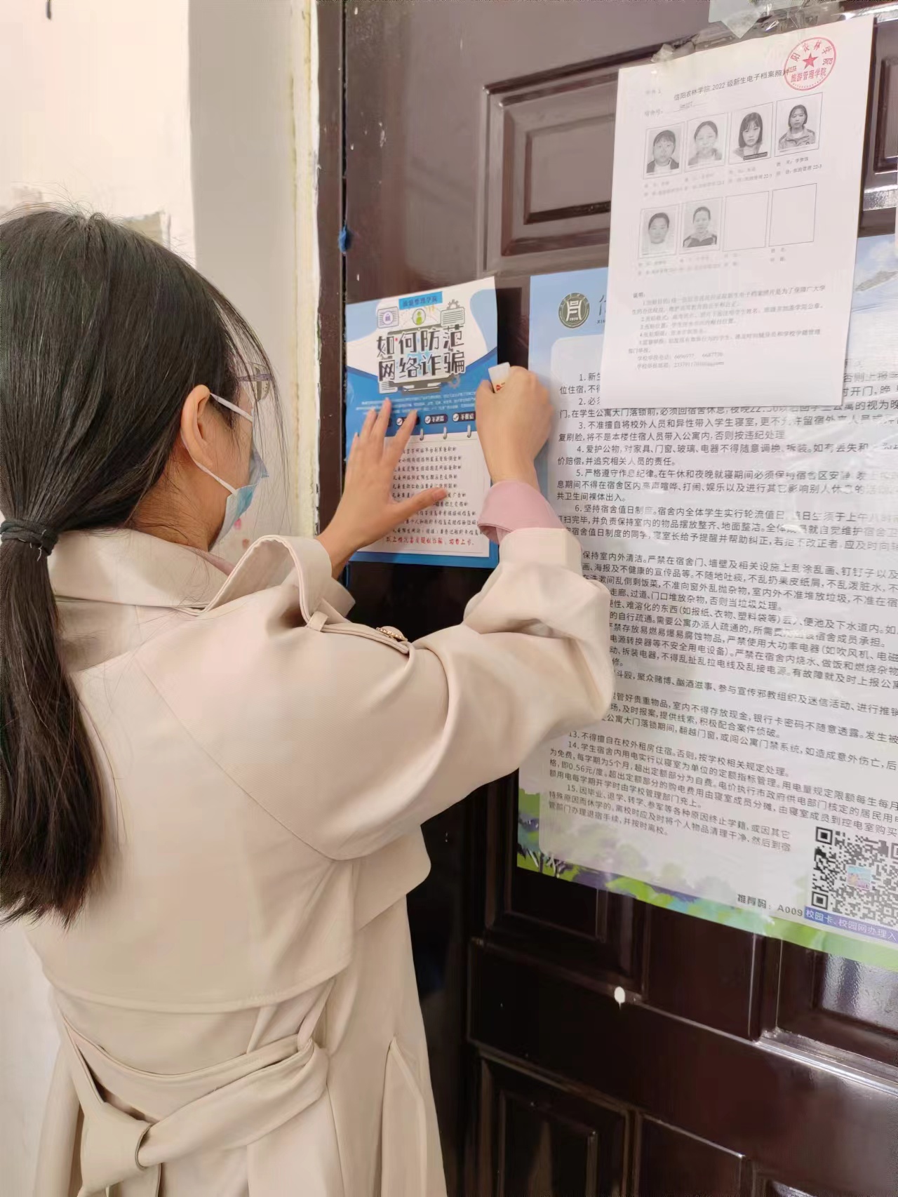 为让同学们了解更多的防诈骗知识,提高同学们的防诈骗意识和安全防范技能,杜绝校园诈骗事件的出现,旅游管理学院于10月17日各辅导员老师深入宿舍进行了防诈骗宣传与如何防范网络诈骗宣传单页的张贴。