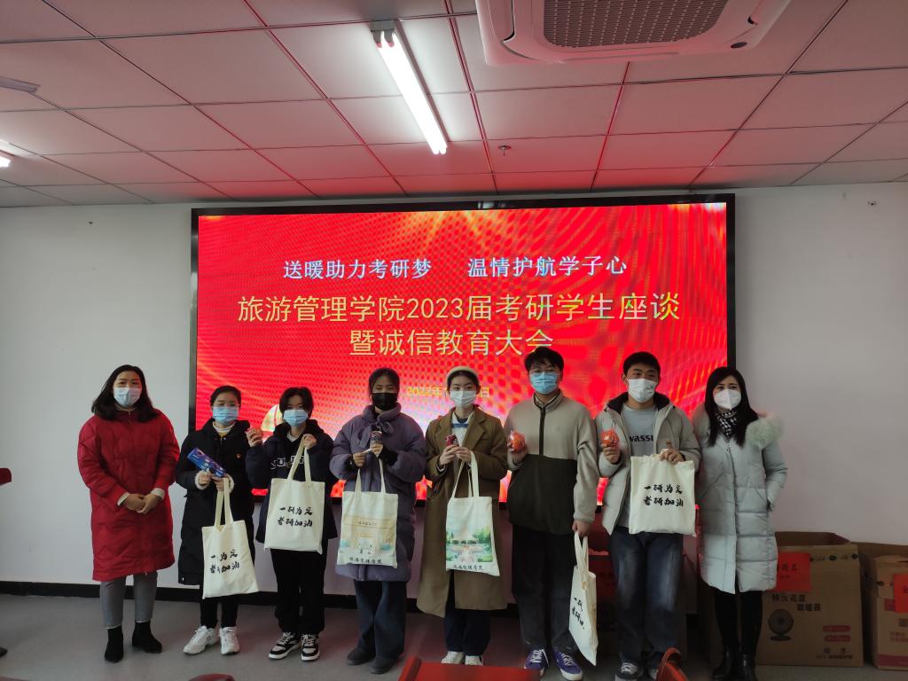 本次会议不仅增强了我院考研学子诚信考试的意识,缓和了同学们紧张的备考情绪,传递了学院老师对考研学生们的深情祝福,也进一步激发了他们的考研热情,坚定了考研信心。今后,旅游管理学院将继续统筹考研资源、提供优质服务,以有效的行动助力考研同学金榜题名!(撰稿人:秦双飞 审稿人:杜丽)