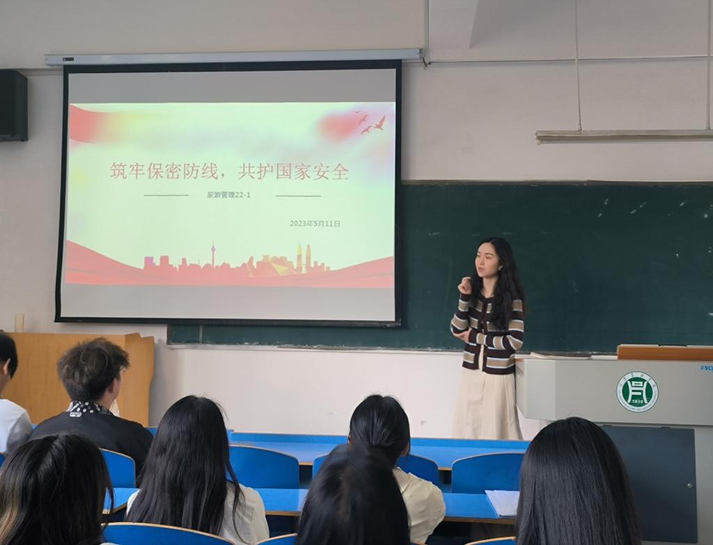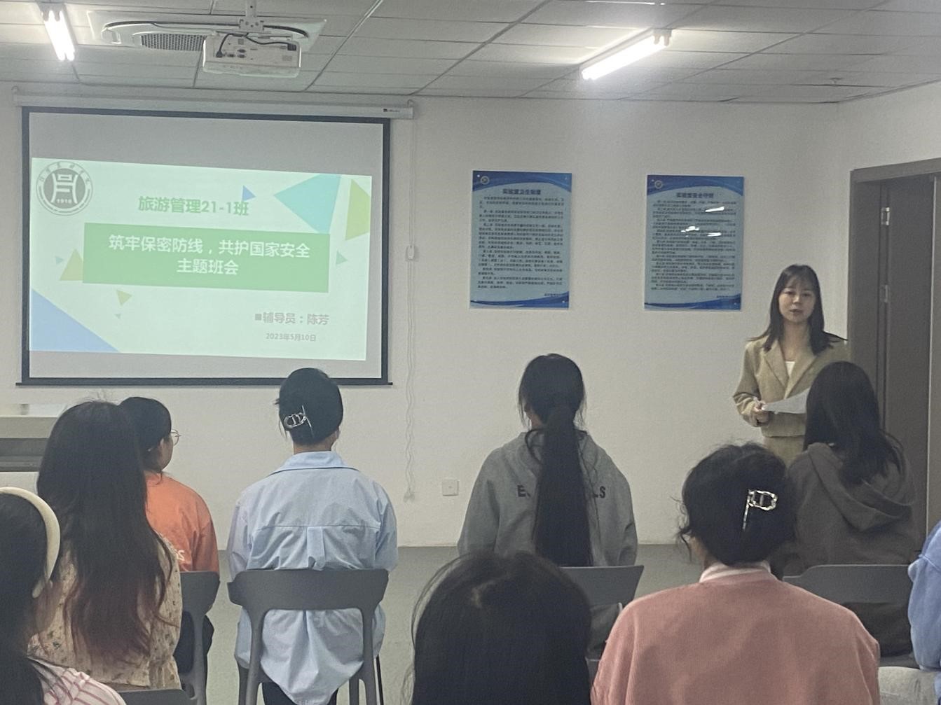 为深入学习贯彻党的二十大精神,切实提升师生国家安全保密意识和保密常识,旅游管理学院于5月4日-8日召开“筑牢保密防线,共护国家安全”主题班会,班会由各辅导员主持。