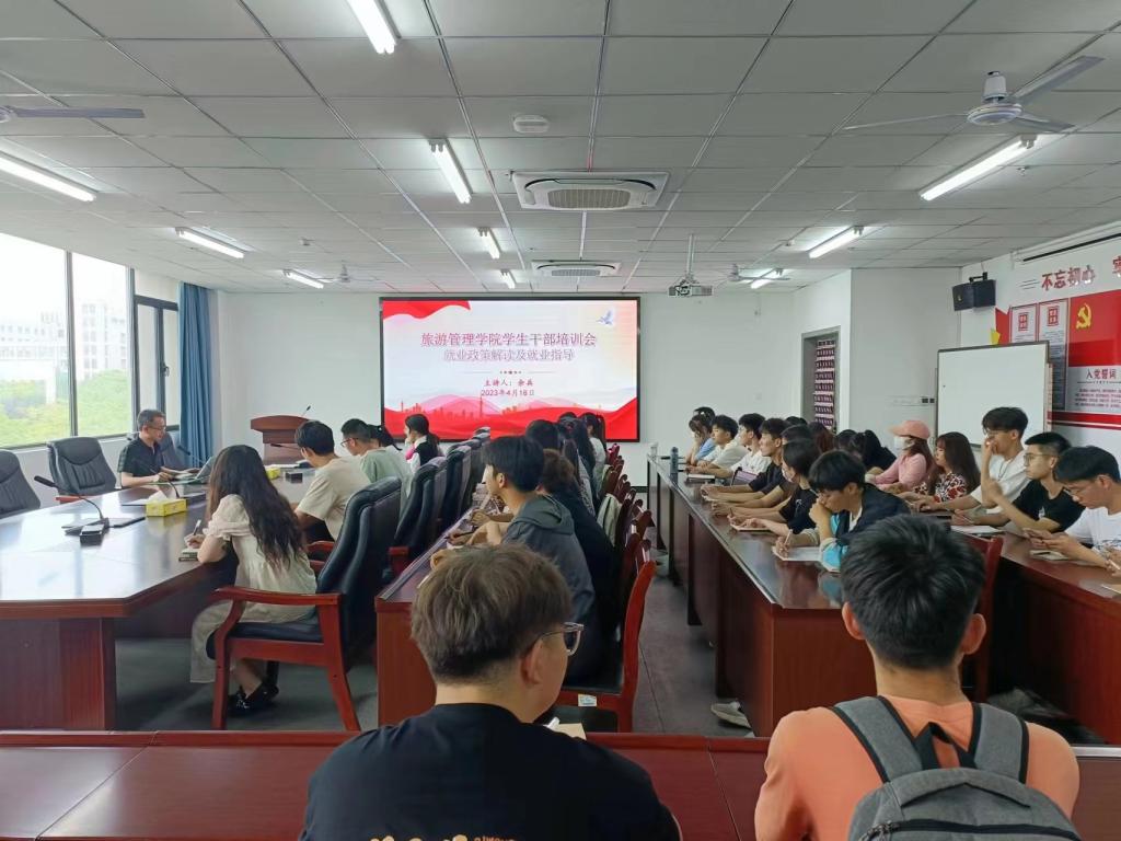 为进一步提升学生骨干综合能力,推动学院团学工作的顺利开展,旅游管理学院于4月18日下午在双创310会议室,举办了2023年度学生干部第二次培训会,院团总支、学生会、自律委员会各部门负责人及各班长、团支书参加会议。会议由学院副院长余兵主讲。