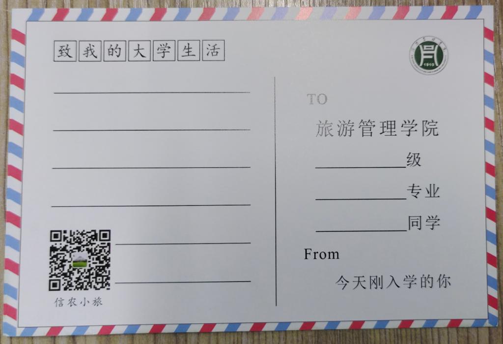 为让新生更好地适应大学生活,做好大学规划,树立理想目标,我院为每位新生发放了一张“通往未来”的明信片,明信片正面印有“院长寄语”,背面新生们可以写下自己大学的理想、目标或者规划,完成后交给辅导员保管,待毕业时辅导员再发放给学生,以此回忆自己“最初的梦想”。