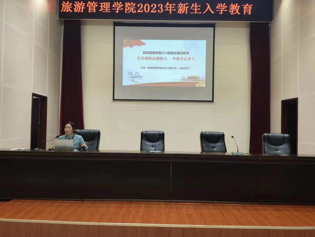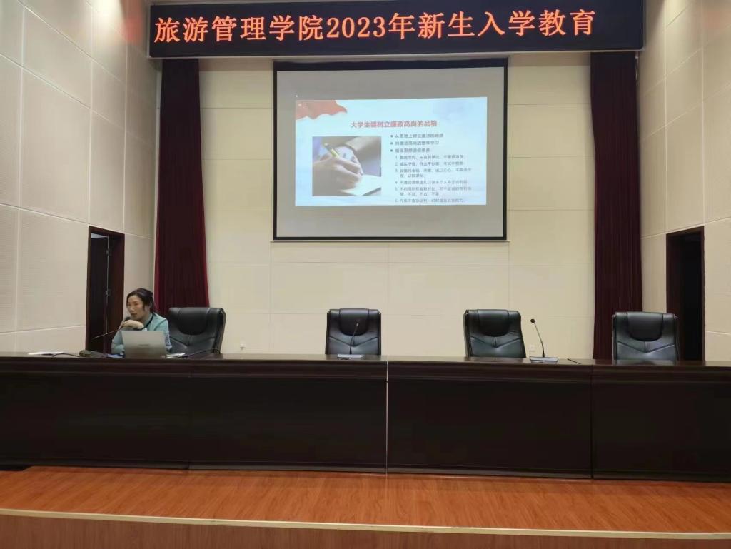 为践行社会主义核心价值观,加强大学生思想道德建设,帮助新生树立廉洁理念。旅游管理学院于9月23日下午在图书馆六楼开展2023级新生廉洁教育讲座,讲座由旅游管理学院党总支副书记杜丽主讲,全体新生参加。
