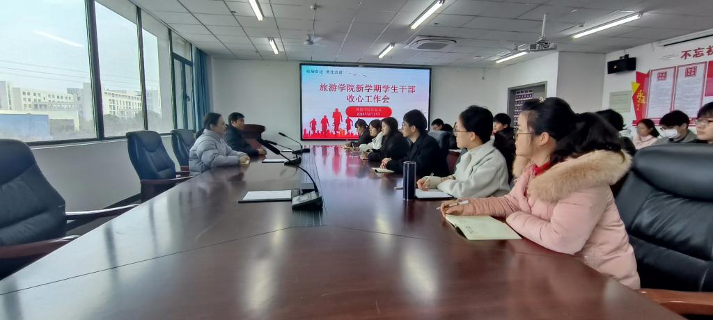 为更好地推进新学期学生干部工作,确保各项任务有序开展,我院于2月26日中午在双创中心310召开了旅游学院新学期学生干部收心工作会议,党总支副书记池水婧、专职辅导员张博、主席团成员、主席团助理、各部门负责人、各班班长团支参加了此次会议,会议由张博主持。