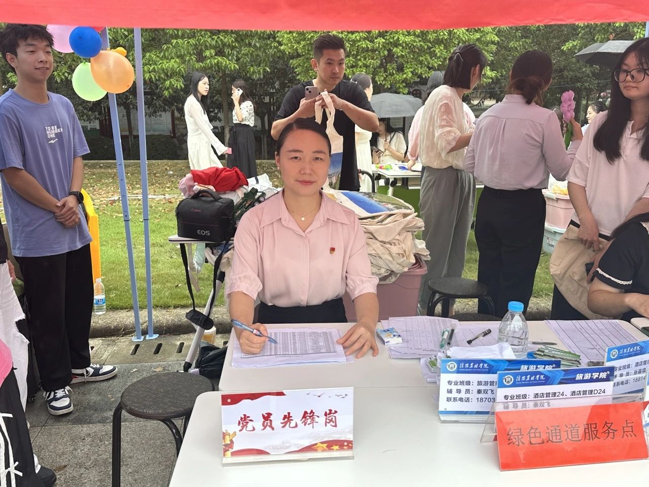 蒹葭苍苍,白露为霜,在秋雨绵绵的白露时节,在迎新现场,旅游学院党总支组织了一支由党员教师和学生党员组成的“党员先锋岗”为新生们提供热情周到的服务,以实际行动践行党的宗旨,展现了新时代大学生党员的良好风貌。