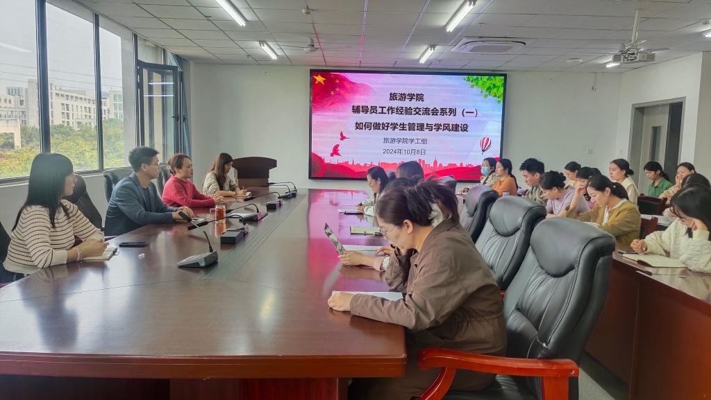 为进一步深化辅导员队伍的专业能力建设,增进辅导员沟通交流,提升辅导员综合素质和业务能力,2024年10月8日,旅游学院举办了以“如何做好学生管理与学风建设”为主题的辅导员工作交流会。本次研讨会由学院党总支副书记池水婧主持,院党总支书记朱长明、副书记池水婧、团总支书记王芳及所有专兼职辅导员参加了本次交流会,会议由池水婧主持。
