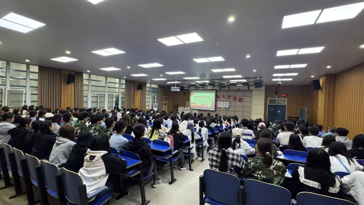 为增强2025级新生的国防观念,普及国家安全知识,激发爱国热情,培塑家国情怀,我院于9月23日分别在一教E101及二教204举办了国防教育专题讲座。本次讲座由学院武装专员易冉主讲,全体新生参加。