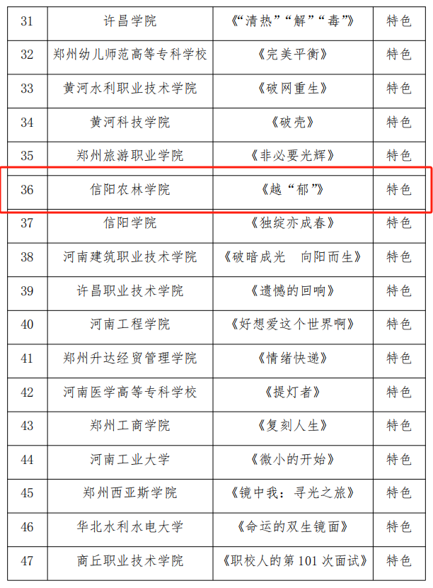 近日,由省委教育工委、省教育厅《关于开展2025年全省高校心理情景剧作品征集展演活动的通知》(教思政函〔2025〕136号),我院原创心理情景剧《越“郁”》在全省参赛作品中脱颖而出,获评河南省高校心理情景剧作品遴选“特色”作品。据悉,本次活动经各高校申报、资格审查、专家评审、综合评议等环节,共遴选出河南省高校心理情景剧获奖作品60部,其中精品作品10部、优秀作品20部、特色作品30部。这一喜人成绩充分展现了我院心理健康教育工作的成效。