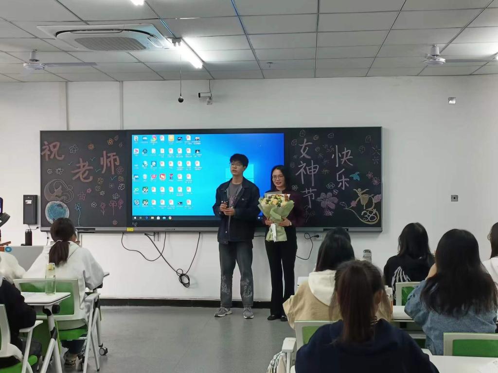 长期以来,我院广大女性教职工充分发挥女性半边天的作用,纷纷在学院教学、科研、学生管理工作中砥砺奋进,勇毅前行,做出了积极的贡献。因此活动中,各班级纷纷以不同的方式庆祝了这一节日,以表达对女性教师们孜孜不倦的教诲与辛苦付出的感谢。有的班级在课前1分钟喊出了响亮的口号,鼓舞了上课气氛,振奋了师生的精神;有的则制作了一幅精美的黑板板报,浪漫又充满温暖,有的还殷殷为老师献出一束美丽的鲜花,荡漾着温馨而满满的感动……满满的仪式感,让今天的课程如此与众不同。