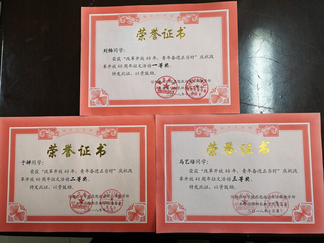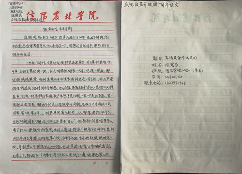 2018年12月,思政部和校团委在2018级本、专科学生中举办了“改革开放40年,青年奋进正当时”——庆祝改革开放40周年主题征文活动。