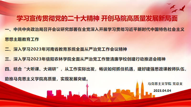 2023年4月4日下午,马克思主义学院在学术交流中心509会议室召开“学习宣传贯彻党的二十大精神 谱写马院高质量发展新篇章”工作会。会议由中国近现代史纲要教研室承办,张坤主持,全体教师参加会议。