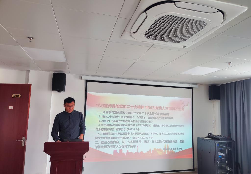 与会教师共同学习党的二十大报告“坚持为党育人、为国育才,全面提高人才自主培养质量”和习近平在学习贯彻习近平新时代中国特色社会主义思想主题教育工作会议上的重要讲话《扎实抓好主题教育 为奋进新征程凝心聚力》等议题。